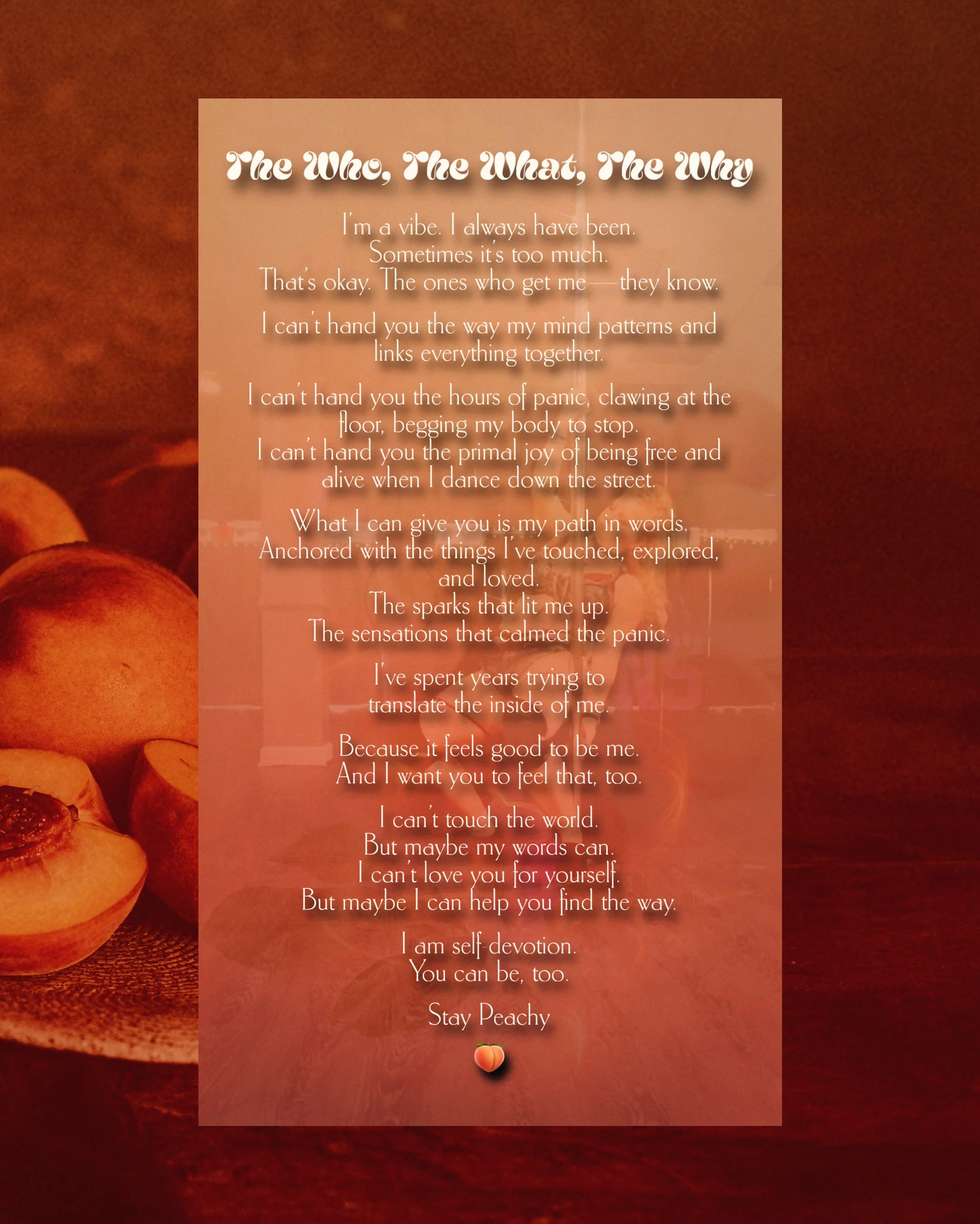 The Peachy Vibe isn’t a mask. It’s us — unfiltered. We have always lived in self-devotion, in joy so loud it looks like madness, in sexuality so steady it feels like fuel.